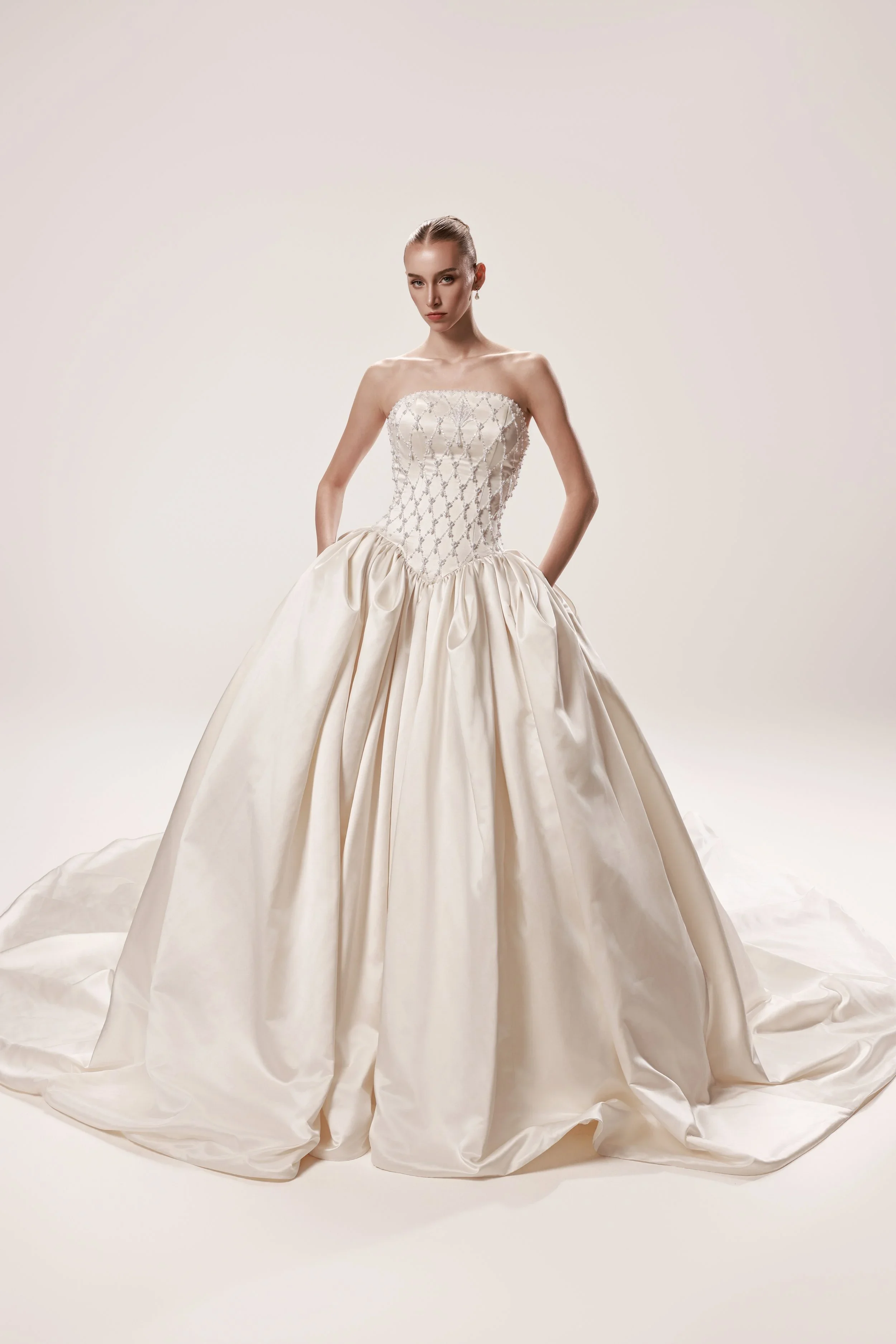 Looking for something truly one-of-a-kind? Our custom design services allow you to bring your vision to life, ensuring every detail is tailored to you. With sample sizes ranging from 6 to 22W and prices starting at $1,500, we cater to a diverse range of brides.